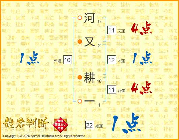 河又耕一さんの天運は11画の4点!