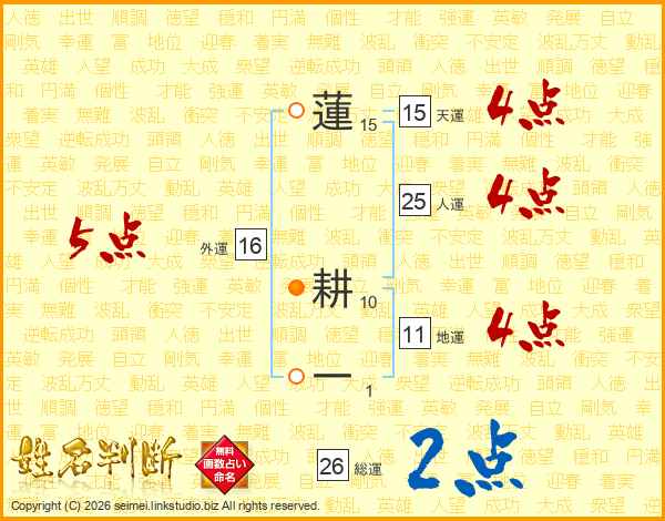 蓮耕一さんの総運は26画の2点!