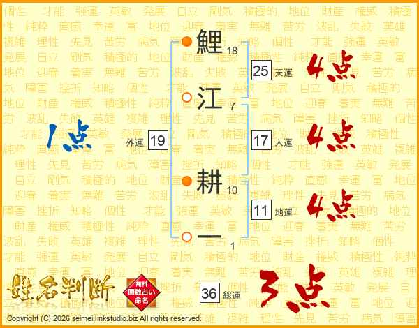 鯉江耕一さんの天運は25画の4点!