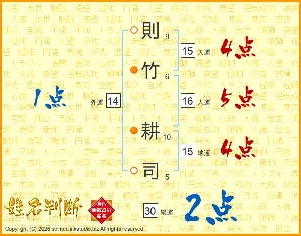 則竹耕司さんの総運は30画の2点!