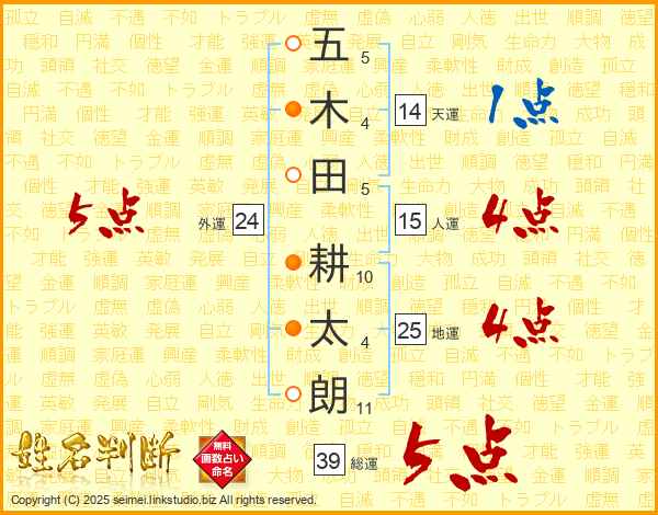 五木田耕太朗さんの総運は39画の5点!