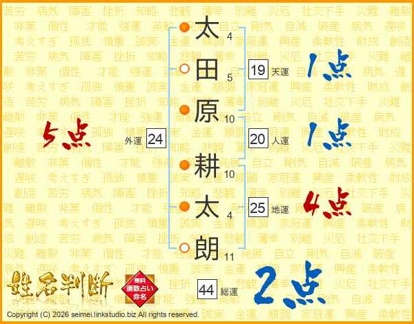 太田原耕太朗さんの地運は25画の4点!