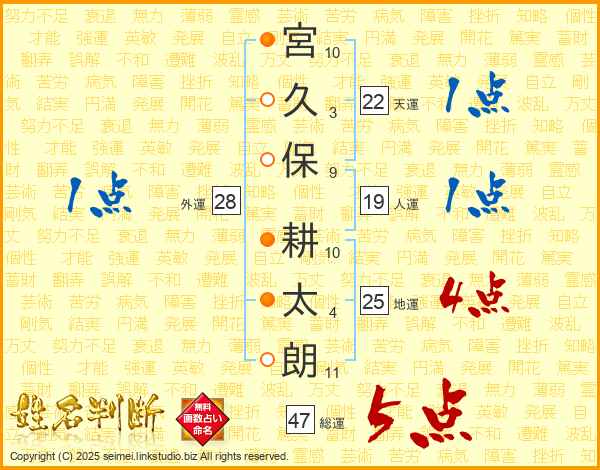 宮久保耕太朗さんの地運は25画の4点!