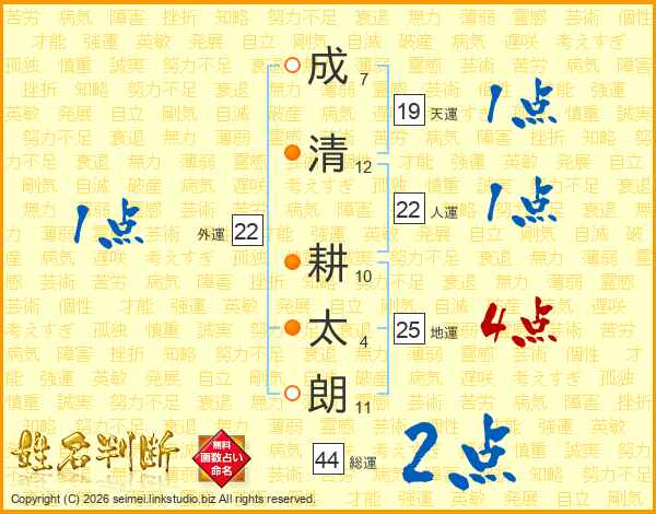 成清耕太朗さんの地運は25画の4点!