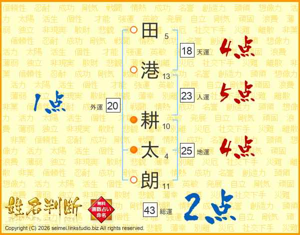 田港耕太朗さんの人運は23画の5点!