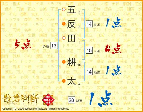 五反田耕太さんの天運は14画の1点!