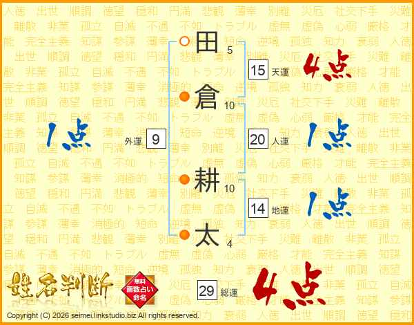 田倉耕太さんの総運は29画の4点!