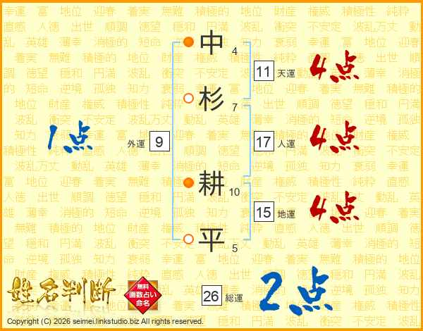 中杉耕平さんの総運は26画の2点!