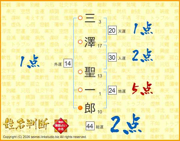三(3画)澤(17画) 聖(13画)一(1画)郎(10画)