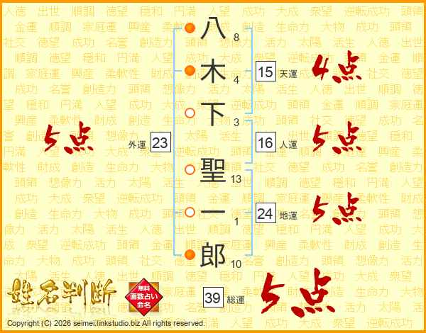 八(8画)木(4画)下(3画) 聖(13画)一(1画)郎(10画)