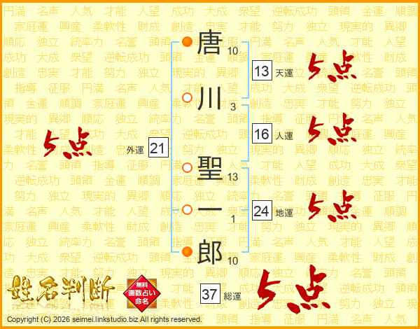 唐川聖一郎さんの総運は37画の5点!