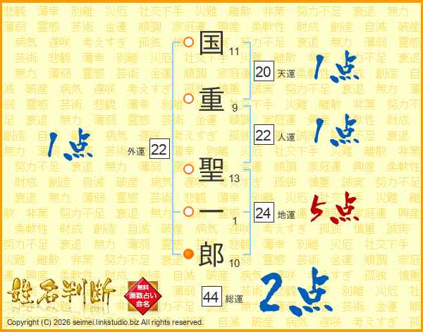国重聖一郎さんの総運は44画の2点!