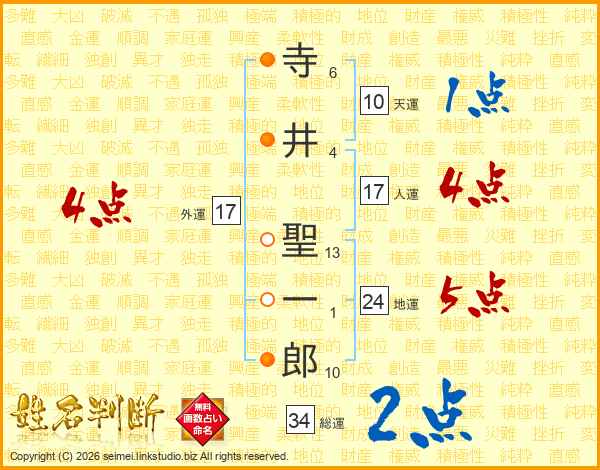 寺井聖一郎さんの総運は34画の2点!