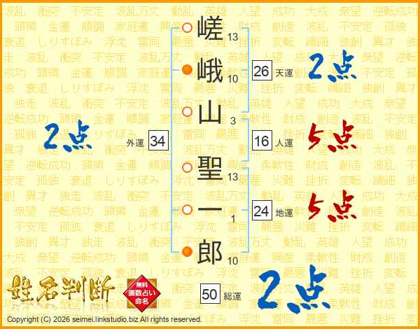 嵯峨山聖一郎さんの天運は26画の2点!