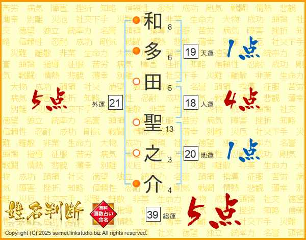 和(8画)多(6画)田(5画) 聖(13画)之(3画)介(4画)