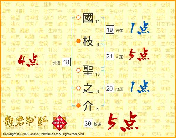 國(11画)枝(8画) 聖(13画)之(3画)介(4画)