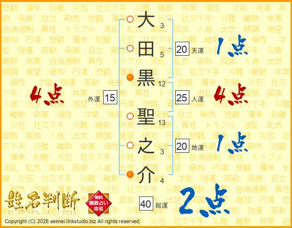 大田黒聖之介さんの人運は25画の4点!
