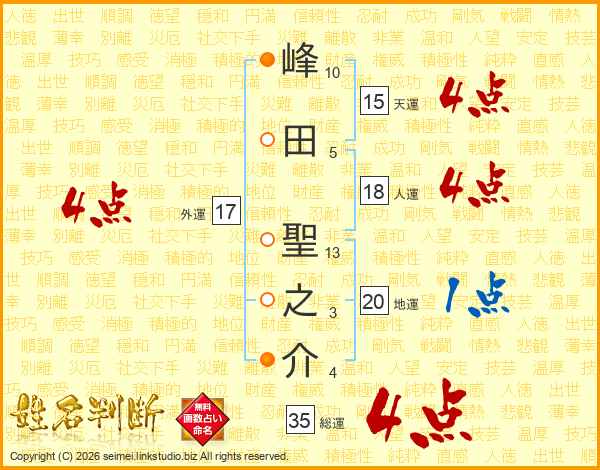 峰田聖之介さんの外運は17画の4点!