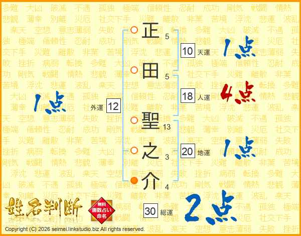 正田聖之介さんの総運は30画の2点!