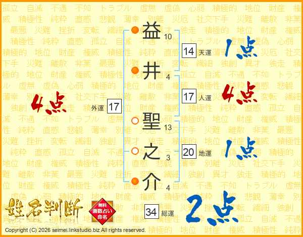 益井聖之介さんの総運は34画の2点!