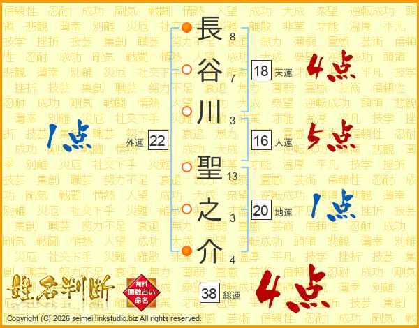 長谷川聖之介さんの総運は38画の4点!