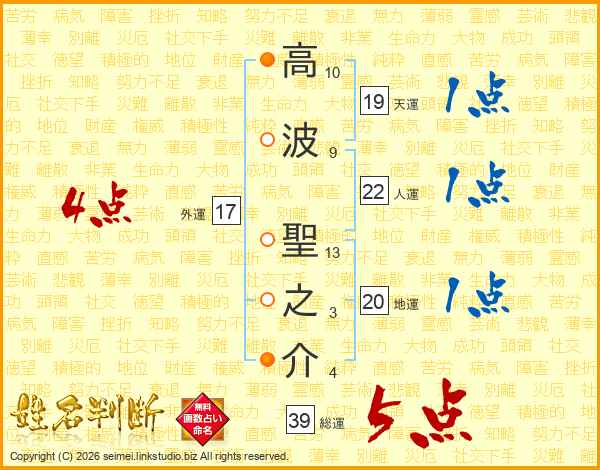 高(10画)波(9画) 聖(13画)之(3画)介(4画)