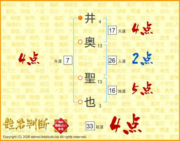 井(4画)奥(13画) 聖(13画)也(3画)