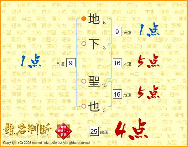 地下聖也さんの総運は25画の4点!