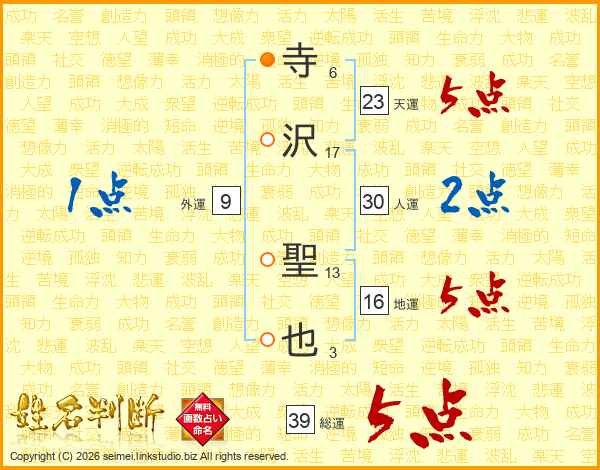 寺沢聖也さんの総運は39画の5点!