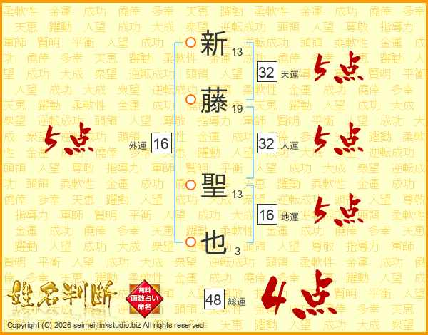 新藤聖也さんの総運は48画の4点!