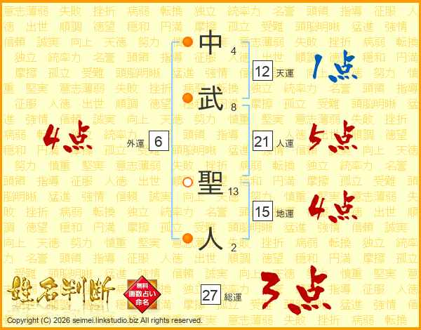 中武聖人さんの総運は27画の3点!