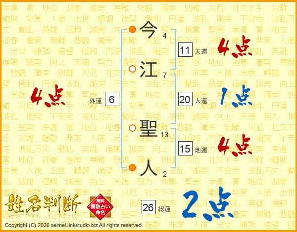 今江聖人さんの総運は26画の2点!