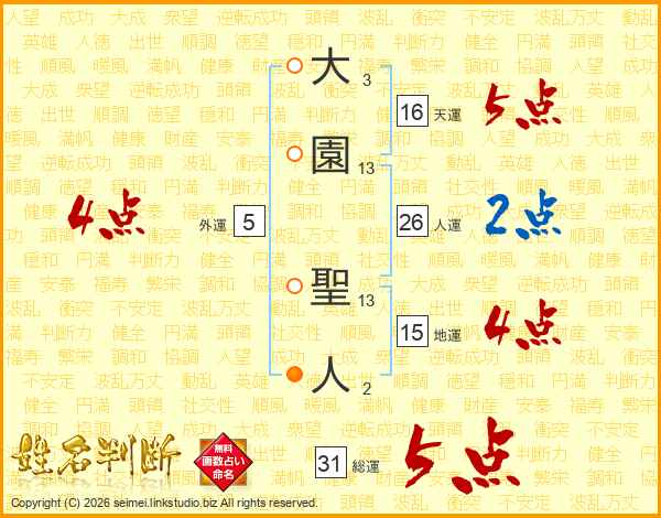 大園聖人さんの総運は31画の5点!