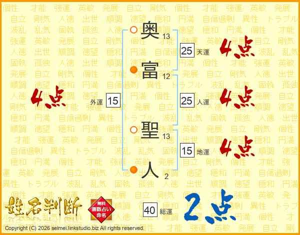 奥富聖人さんの総運は40画の2点!