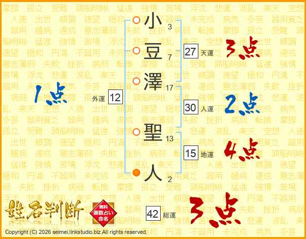 小豆澤聖人さんの総運は42画の3点!