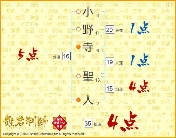 小野寺聖人さんの総運は35画の4点!