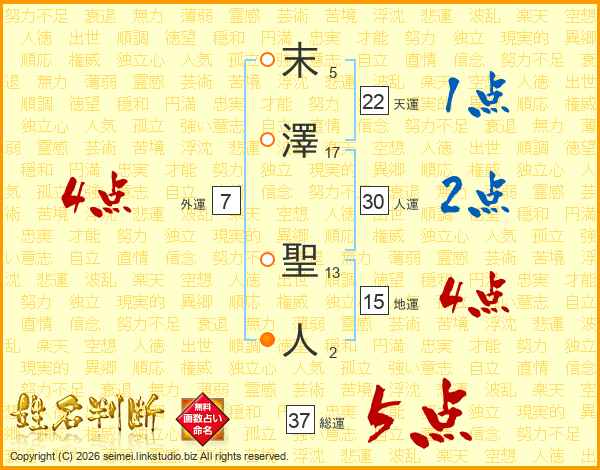 末(5画)澤(17画) 聖(13画)人(2画)