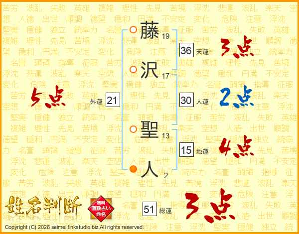 藤(19画)沢(17画) 聖(13画)人(2画)