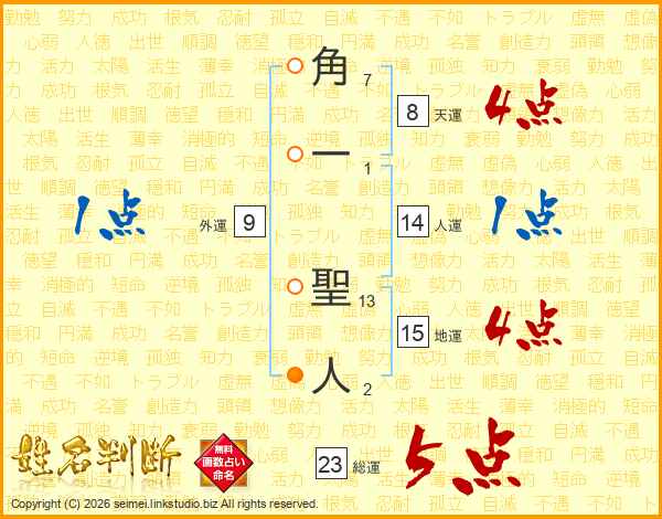 角一聖人さんの総運は23画の5点!