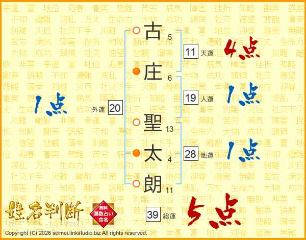 古庄聖太朗さんの総運は39画の5点!
