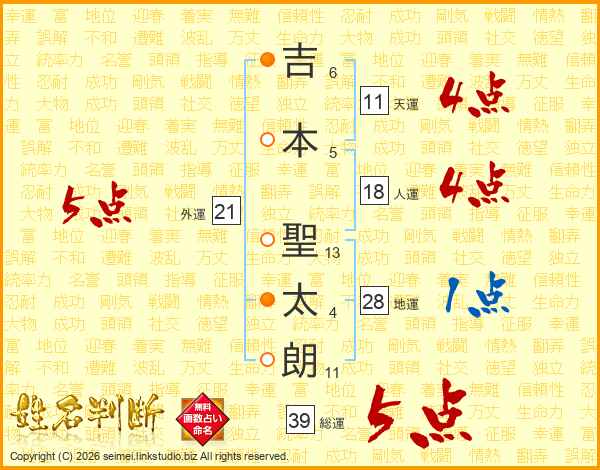 吉本聖太朗さんの総運は39画の5点!