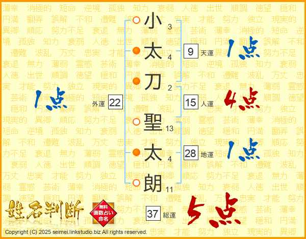 小(3画)太(4画)刀(2画) 聖(13画)太(4画)朗(11画)