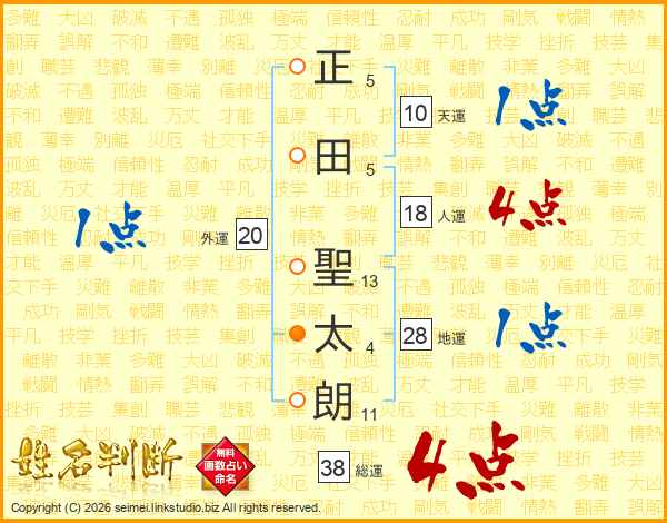 正(5画)田(5画) 聖(13画)太(4画)朗(11画)