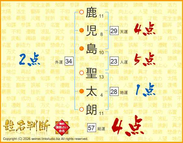 鹿児島聖太朗さんの総運は57画の4点!