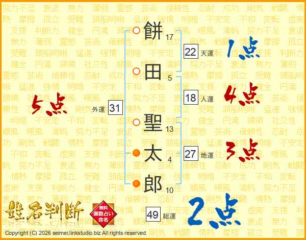 餅田聖太郎さんの総運は49画の2点!