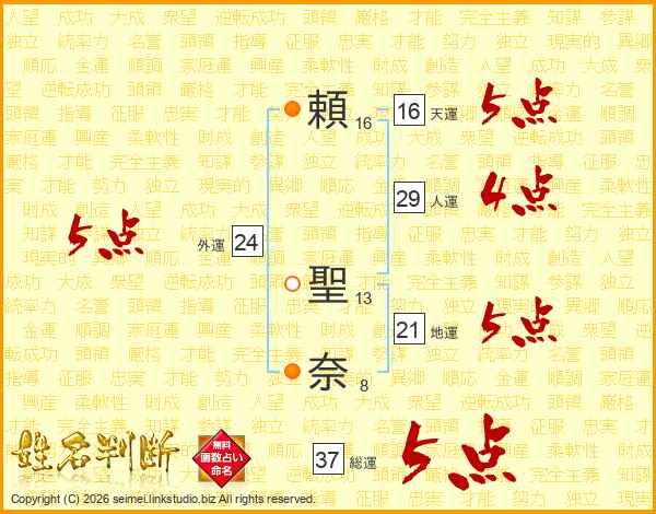 頼(16画) 聖(13画)奈(8画)