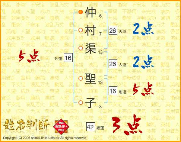 仲(6画)村(7画)渠(13画) 聖(13画)子(3画)