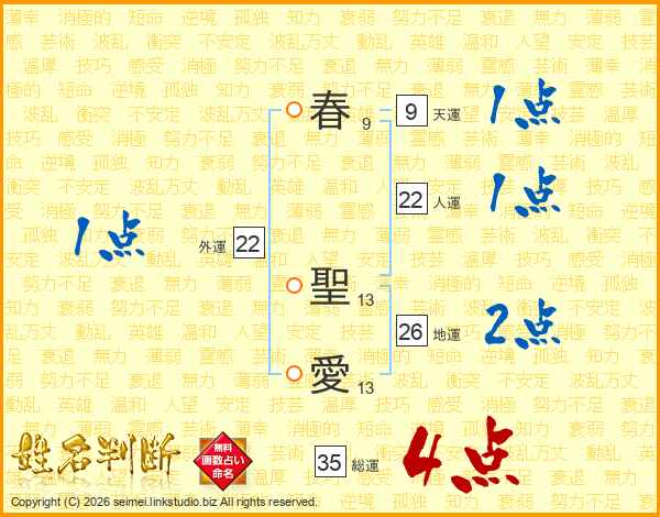 春聖愛さんの総運は35画の4点!