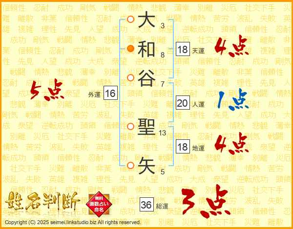 大(3画)和(8画)谷(7画) 聖(13画)矢(5画)