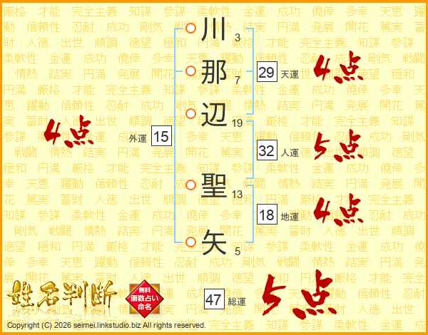 川那辺聖矢さんの総運は47画の5点!